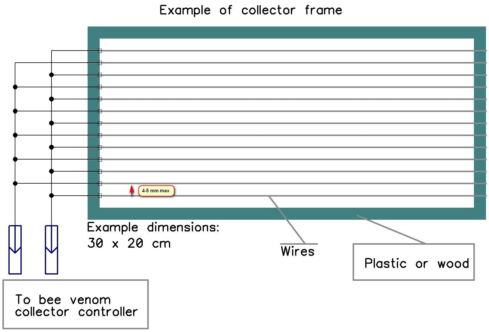 Device for collecting bee poison. Does not kill be es. Not dangerous for the humans. The board no need any soldering